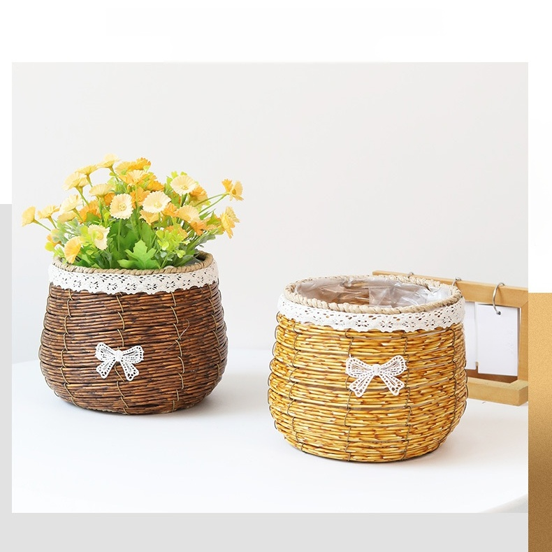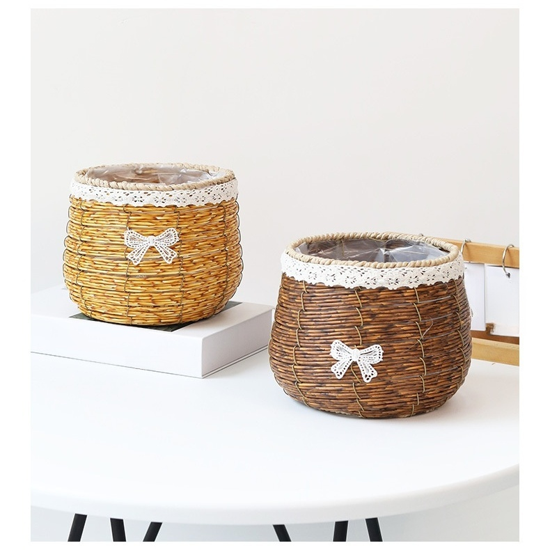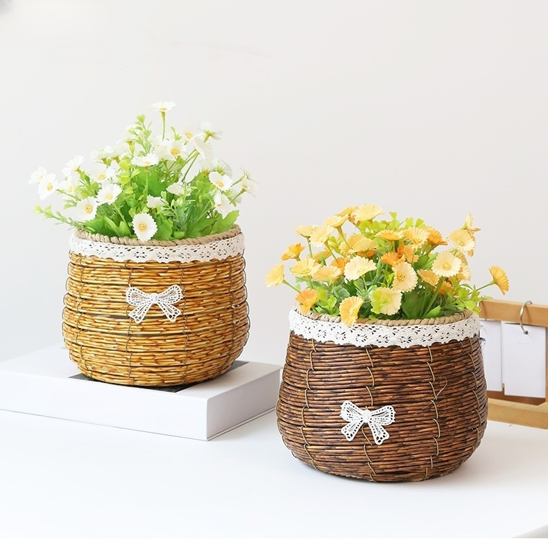 家庭用フラワーラタンバスケット 装飾収納かご